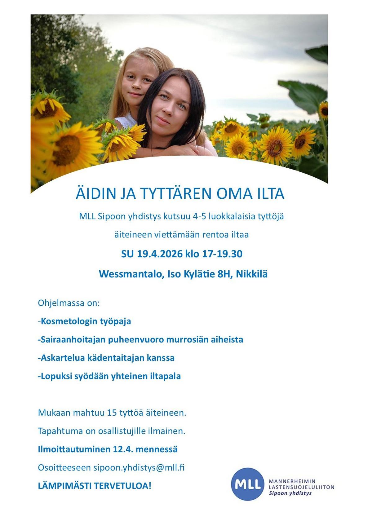 MLL Sipoon yhdistys pyrkii järjestämään keväisin lämminhenkisen äiti-tytär-illan.